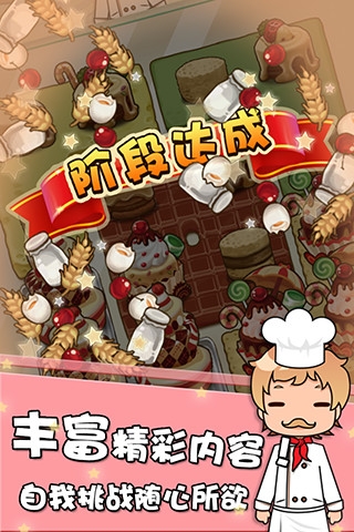 1、完成各种漂亮的糕点就可以通关了,游戏中也有技能、宠物等等。