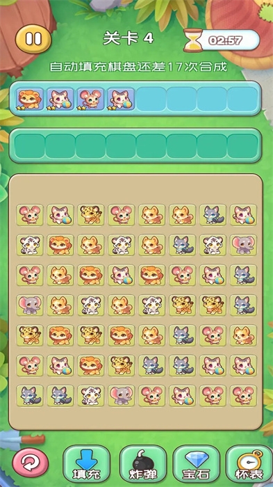 2、在这款游戏中,我们采用了三消和卡牌对战的方式,将同样的画面组合在一起,让玩家有一种融合的感觉。