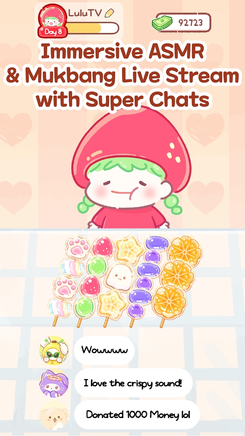 2、糖葫芦达人正版游戏最新版中文版如果没有新鲜的水果,主播想要生存下去,几乎是不可能的。松饼,地球软糖,青阳辣椒,都有!用奇怪的原料做成冰糖葫芦。