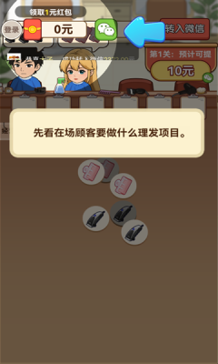 2、一款趣味三消游戏,主题是理发师,消掉相应的物品,就能为顾客提供服务,只要完成顾客提供的服务,就能获得奖励!