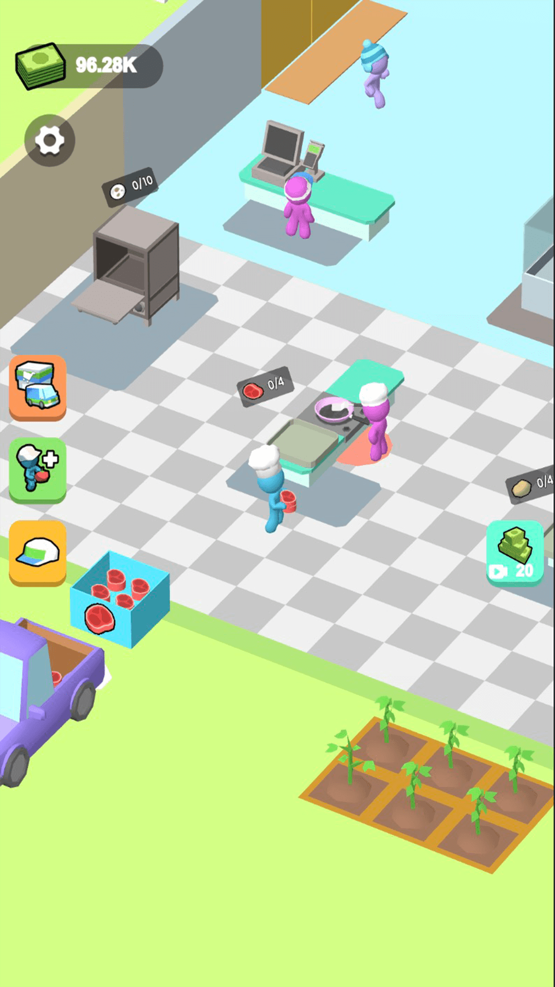 2、在这款游戏中,你可以开一家餐厅,你必须不断地升级,才能解锁更多的装备。
