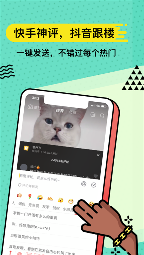 1、发送表情颜文字都可以实现,一键怼人、主播留言、微博控评、快速神评论。