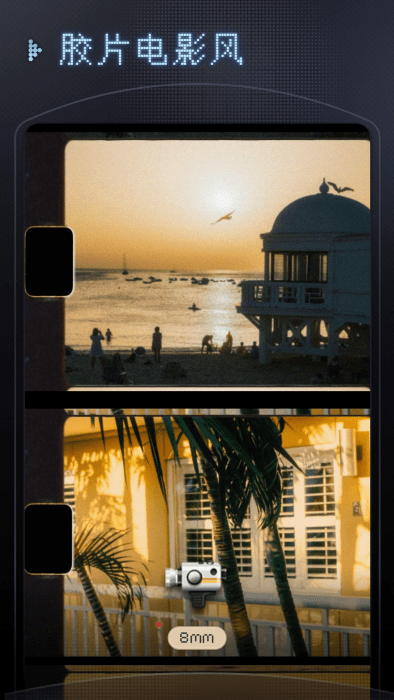 3、几帧dv复古摄像机最新版下载应用内置了各种复古风格,有 Dv、胶片、旧手机特效,使用者可以在不需要手动调节参数的情况下,通过一次点击就能拍出一段风格独特、氛围浓郁的怀旧视频。
