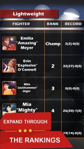 1.拳击帝国手机版下载安装 是一个非常吸引人的管理游戏,在一个拳击社。你在游戏中扮演的角色是一个拳击推广员,负责招聘,训练,管理拳手,安排赛事,以及与其它的拳协竞赛。