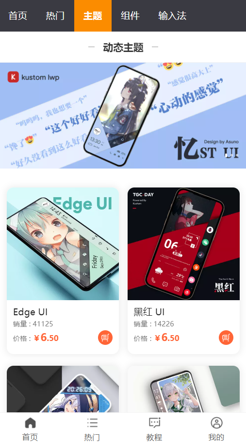 1、各种优秀的原创主题都有,比如热门推荐、动态主题、小部件、免费区域等等。