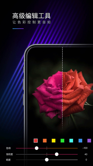 1、mix滤镜大师官方版正版安卓版具有强大的图像编辑能力。除了15个基本的调色工具,还支持曲线,色度分离, HSL等调色工具。