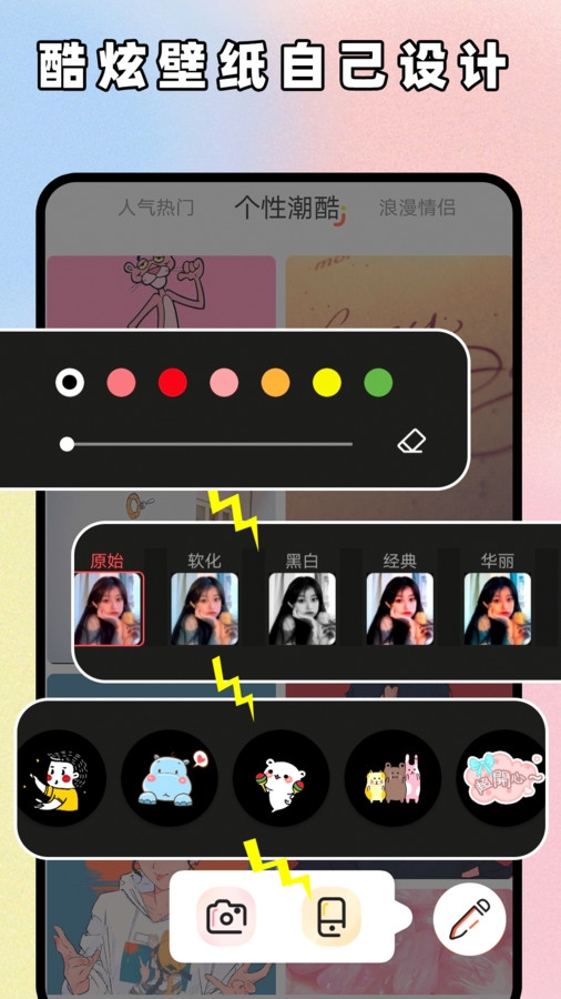 2、将这些图片制作成壁纸,随时让你定制自己的手机。能够将手机本地的图片导入到软件当中。