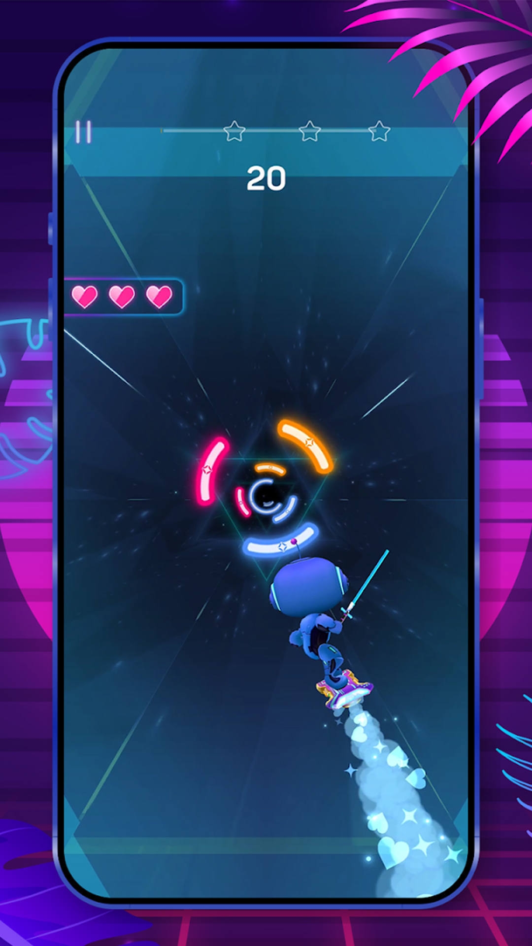 1、律动穿梭游戏下载 完美融合视觉与声音,营造出炫丽的光影效果与动感的音乐。
