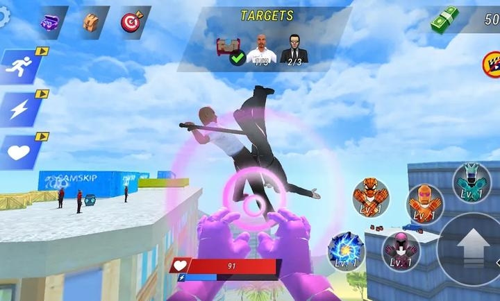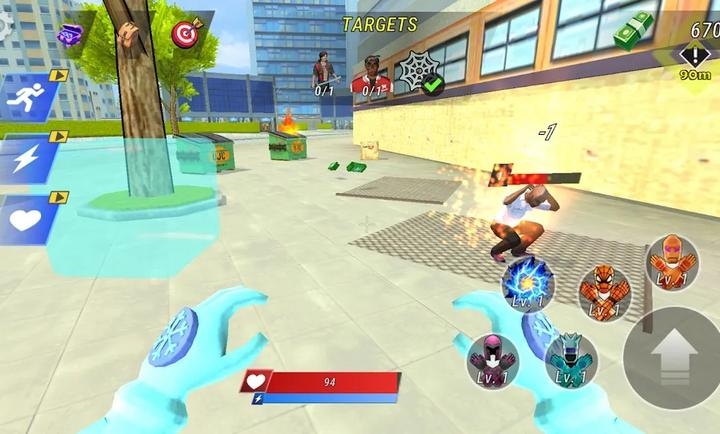 1. 玩家能够变身成为能够施展各类元素技能的超级英雄,在这座城市空间里与敌人展开搏斗。