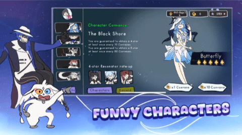 鸣朝抽卡模拟器大聪明版下载(Wacky Wuwa)是可以带给玩家抽卡乐趣的模拟游戏,游戏的画风很魔幻,可以模拟让玩家体验抽鸣潮中角色的感觉,自己在游戏中没有抽到的角色这里都是可以进行获得的,游戏中的卡池角色这里全都是有的,这里还有全新的up角色可以抽取,这里抽数没有限制,也可以测试看看自己的欧气怎么样。