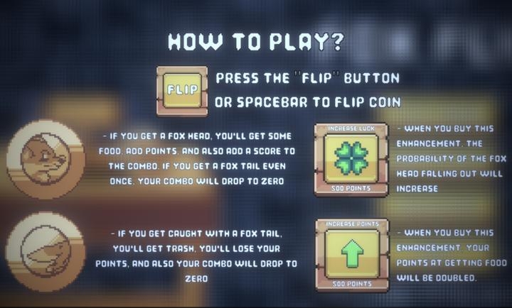 1. 一只狐狸被困在一个神秘之地,您需要通过抛掷硬币来累积积分,寻觅食物并协助它规避各类麻烦。