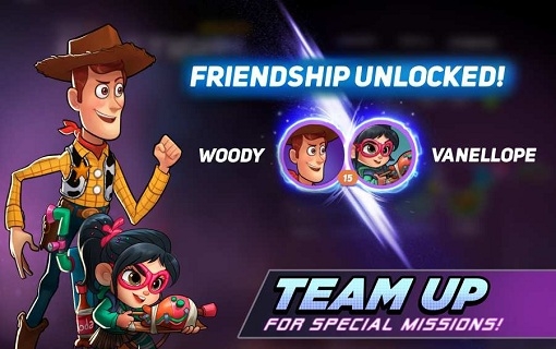 3、在这款游戏里,你可以与受欢迎的人物如超人、朱迪、艾莎、拉尔夫、云妮洛普等共同作战。